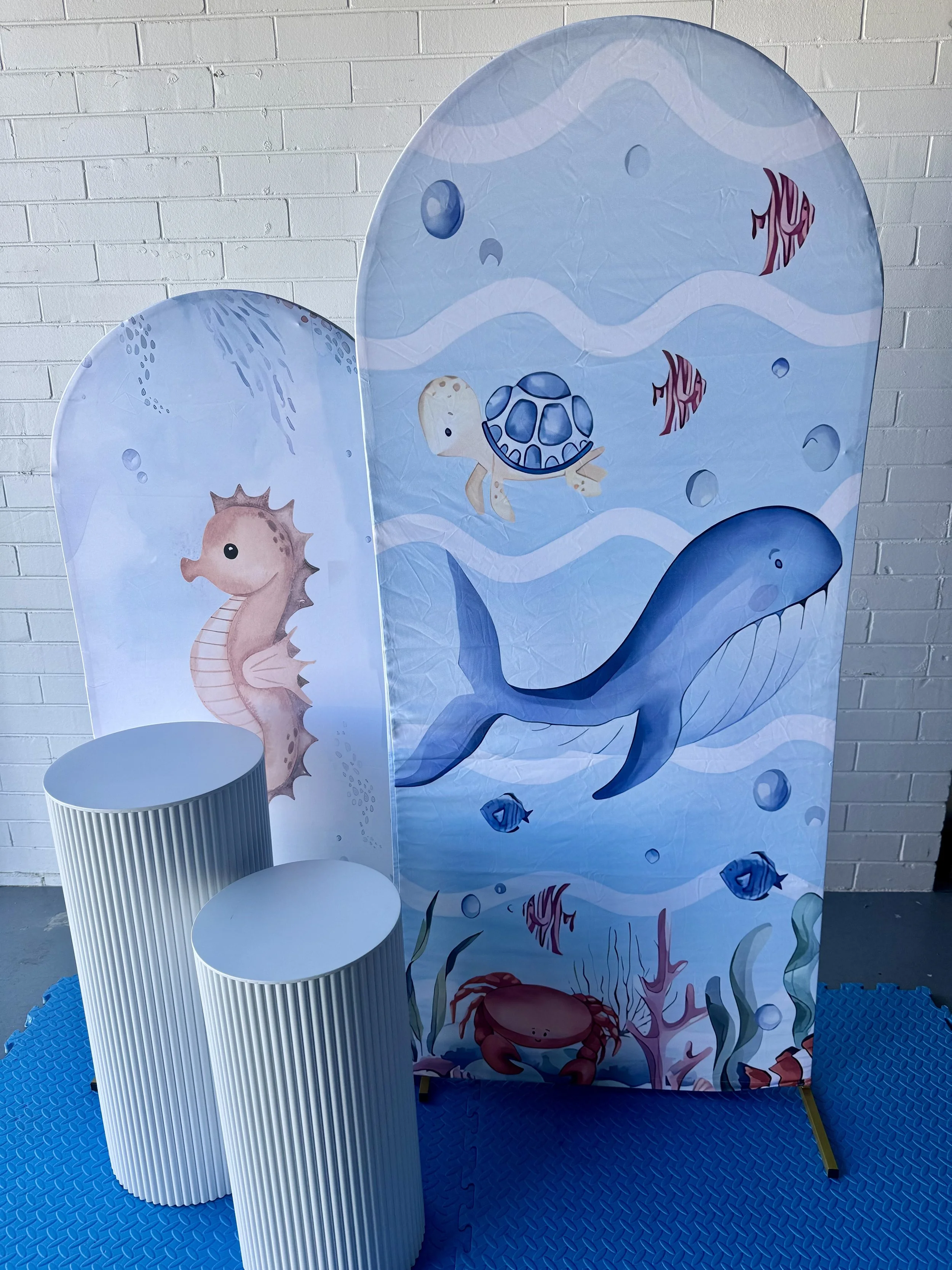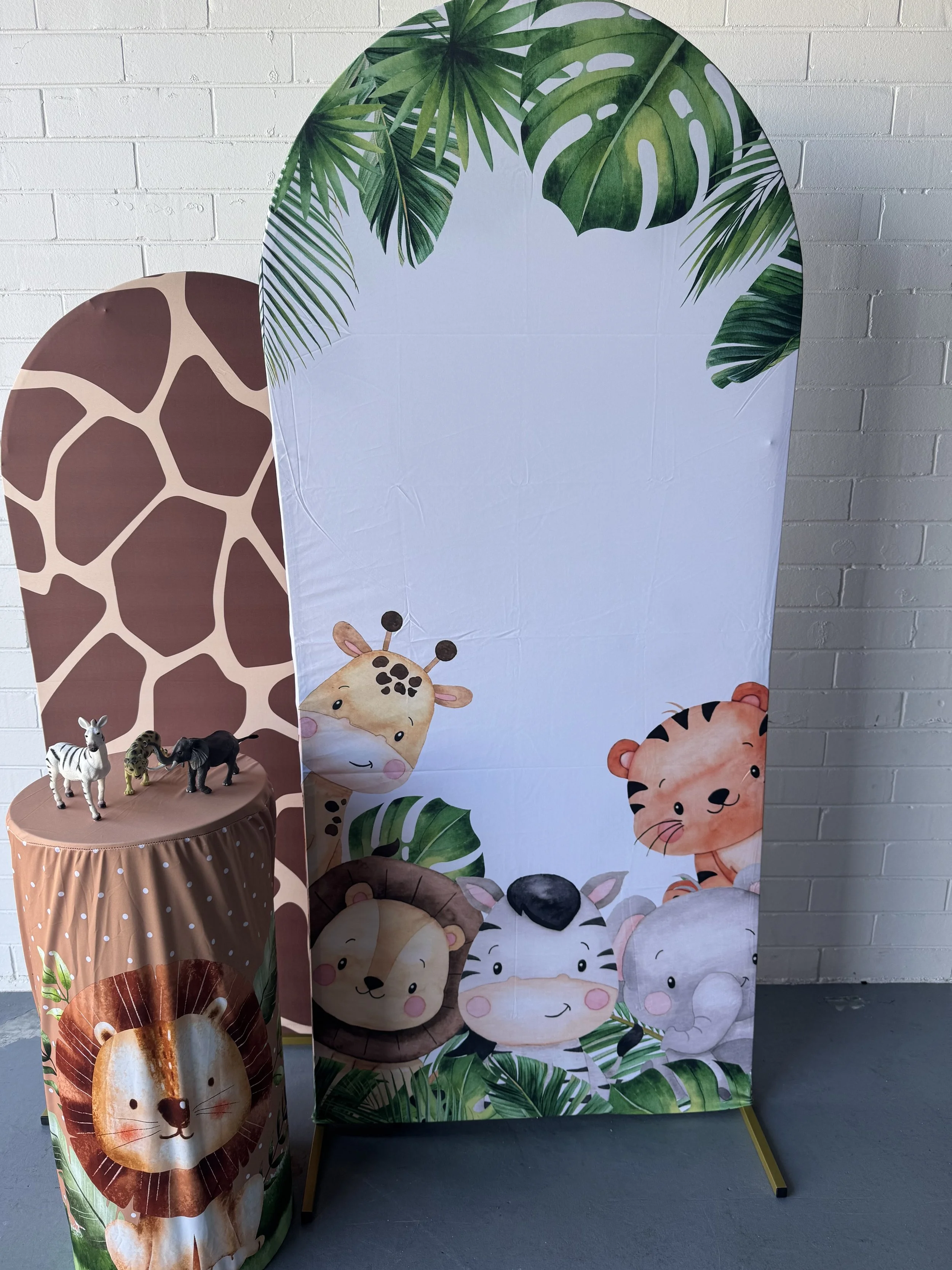 Includes 2 Arch Backdrops with Covers & 1 Plinth with Lion Cover
